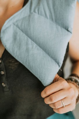 Kołnierz obciążeniowy wypełniony jest bezołowiowymi, antyalergicznymi mikrokulkami szklanymi, które są równomiernie rozłożone. Dzięki temu idealnie dopasowuje się do ciała. Możesz go prać w pralce, przy obrotach max 800 obr./min.